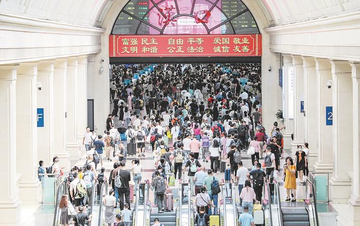 随着暑假的来临,武汉三大火车站迎来客流高峰。据了解,从7月1日暑运开始至7月12日,武汉三大火车站共发送旅客335.69万人次,其中武汉站共发送旅客139.86万人次,同比增长16.5%;武昌站发送62.93万人次,同比增长5.2%;汉口站共发送旅客132.9万人次,同比增长7%。 楚天都市报极目新闻记者李辉 通讯员孟立 邱晟 实习生雷蔻紫摄影报道