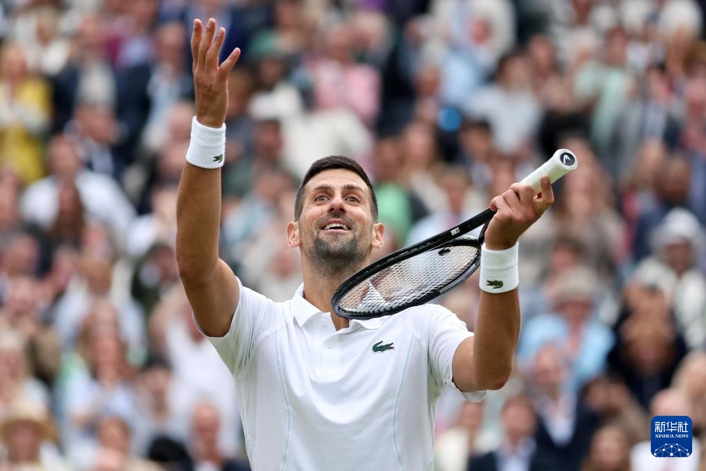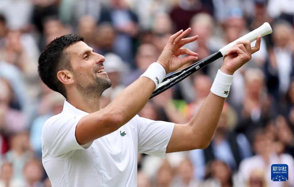 7月12日,焦科维奇在比赛后庆祝胜利。新华社记者 李颖 摄