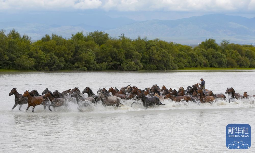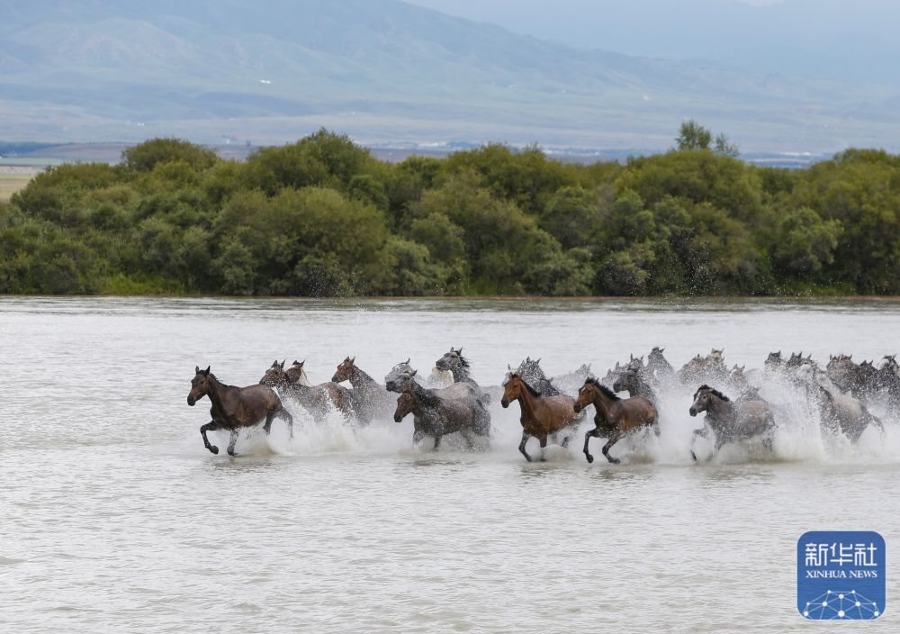 这是7月11日在新疆昭苏湿地公园拍摄的天马浴河。