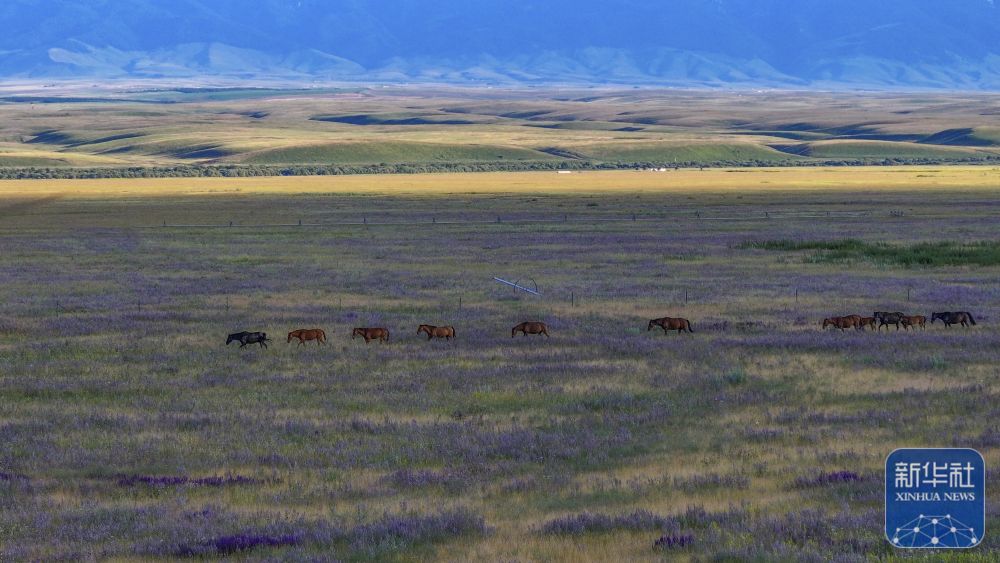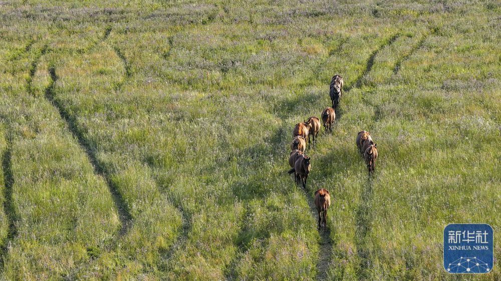 这是7月7日在新疆昭苏拍摄的马匹(无人机照片)。
