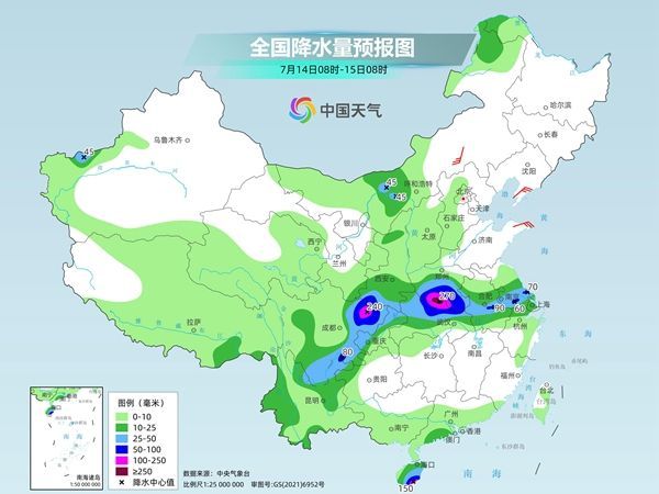 需要注意的是,7月以来,四川盆地降水量已经是常年的1至4倍之多,未来几天还将出现持续强降雨,暴雨叠加致灾风险极高。此外,雨带东段山东南部等地的降雨量也将具有一定极端性,未来几天防汛压力增大,公众需密切关注当地发布的最新预警、预报信息,做好防范措施。