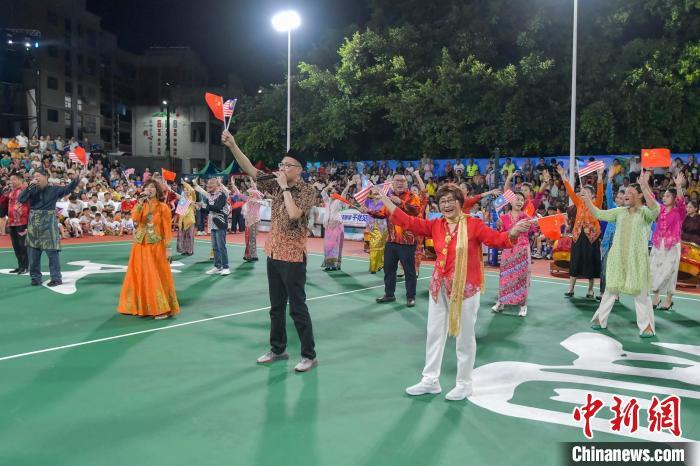 7月13日晚,2024年“九九杯”海南(文昌)乡镇排球联赛铺前站迎来一场中马排球友谊赛。图为马来西亚专场演艺现场。中新网记者 骆云飞 摄