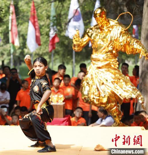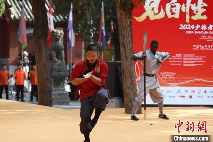 7月14日,2024少林考功总决赛继续在中国嵩山少林寺举行。13日以来,来自47个国家和地区的逾百位少林功夫习练者在此展开比拼,争夺“2024世界少林功夫之星”。以“千年传承,历久弥新;少林文化,人类共享”为主题的是次大赛由少林寺主办。图为选手在比赛中。中新社记者 阚力 摄