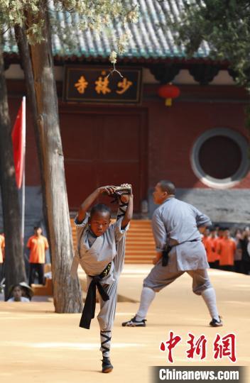 7月14日,2024少林考功总决赛继续在中国嵩山少林寺举行。13日以来,来自47个国家和地区的逾百位少林功夫习练者在此展开比拼,争夺“2024世界少林功夫之星”。以“千年传承,历久弥新;少林文化,人类共享”为主题的是次大赛由少林寺主办。图为参赛选手展示少林功夫。中新社记者 阚力 摄
