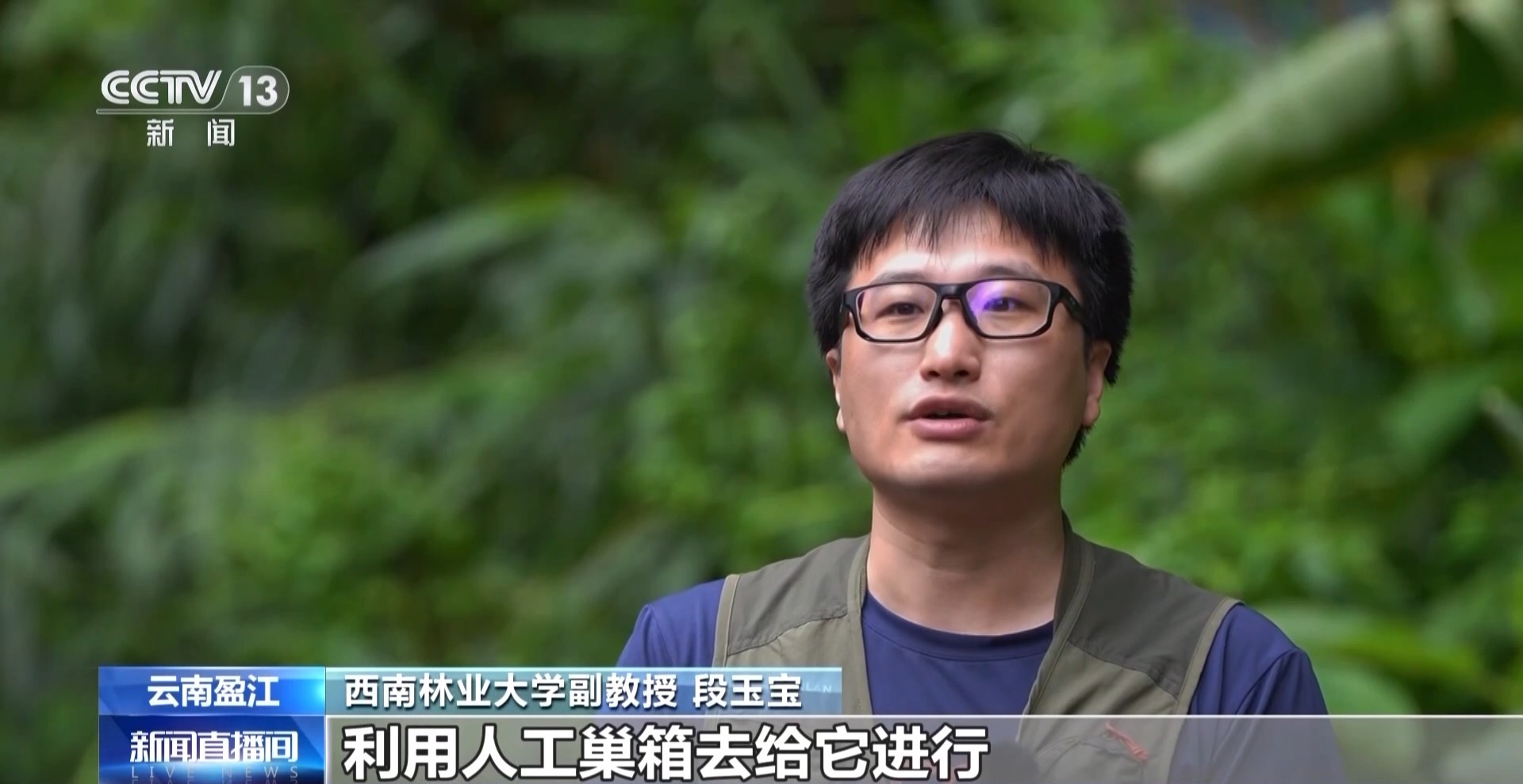 西南林业大学副教授 段玉宝:利用人工巢箱给它进行野外补给可利用巢的树木,对它未来种群数量的恢复、物种的保护具有非常积极的作用。