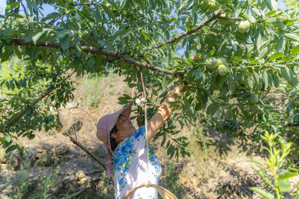 在重庆市巫山县曲尺乡柑园村,果农在采摘巫山脆李。新华社记者黄伟 摄