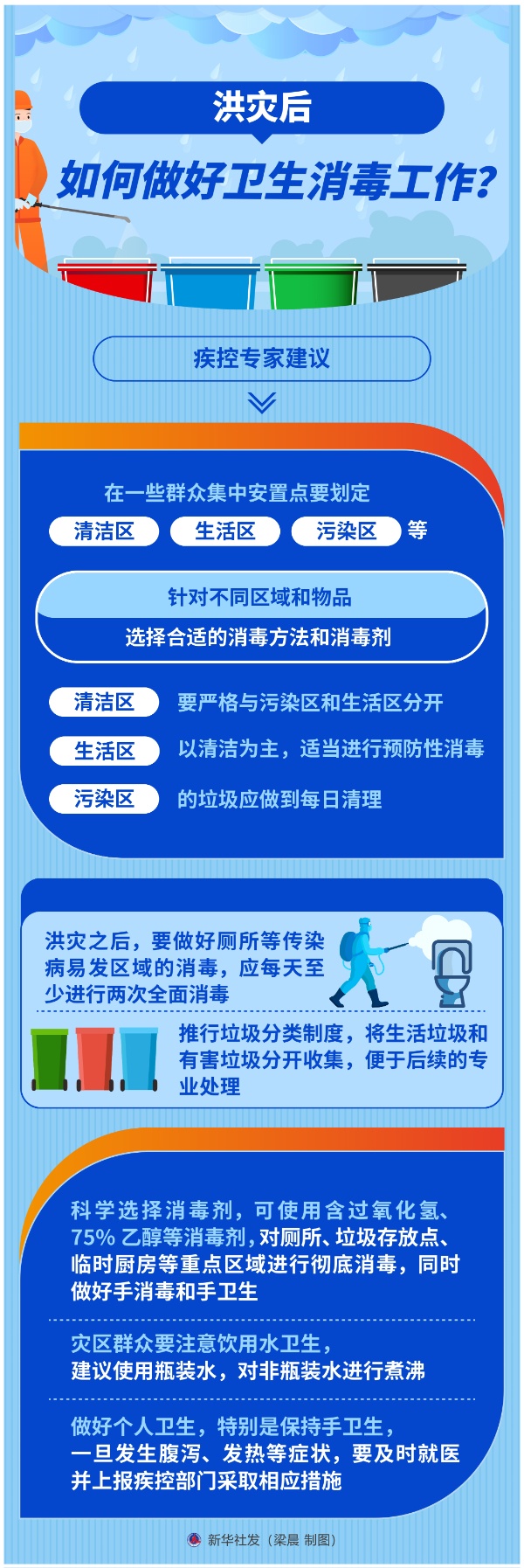 近日,南方多地进入汛期。疾控专家提醒,洪涝灾害后,水源可能受到污染,垃圾和污水堆积,易成为病原体滋生的温床。应做好卫生消毒工作,防止传染病流行。