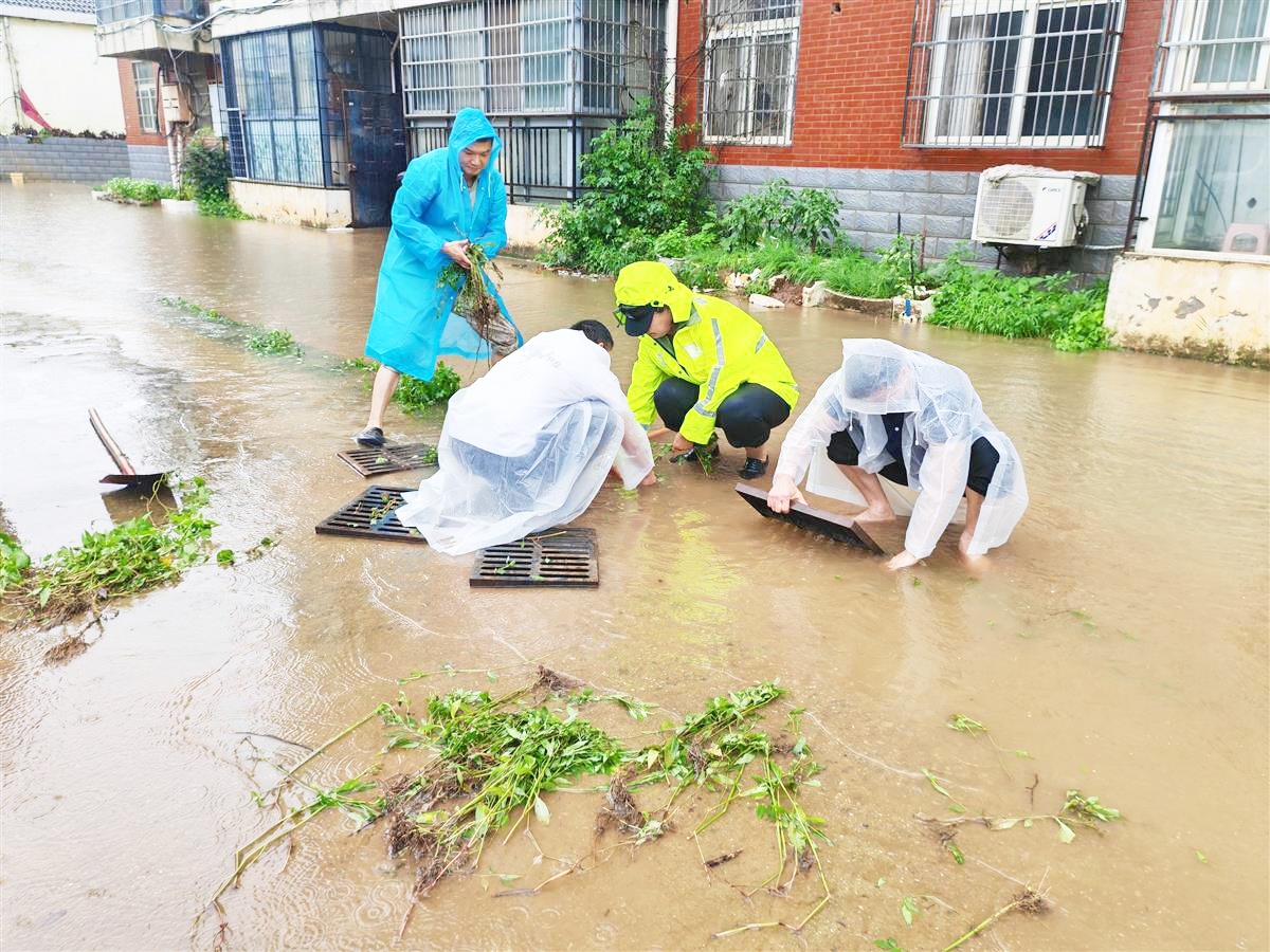 天色发白时,民警史雪荣和社区警务巡逻队发现,因为暴雨冲刷,一些下水管道入口被树枝、泥土堵塞,积水排泄不畅。史雪荣又带领社区警务巡逻队队员们用锹铲、用手扒,疏通雨水下水口,让积水排泄得再快一些。