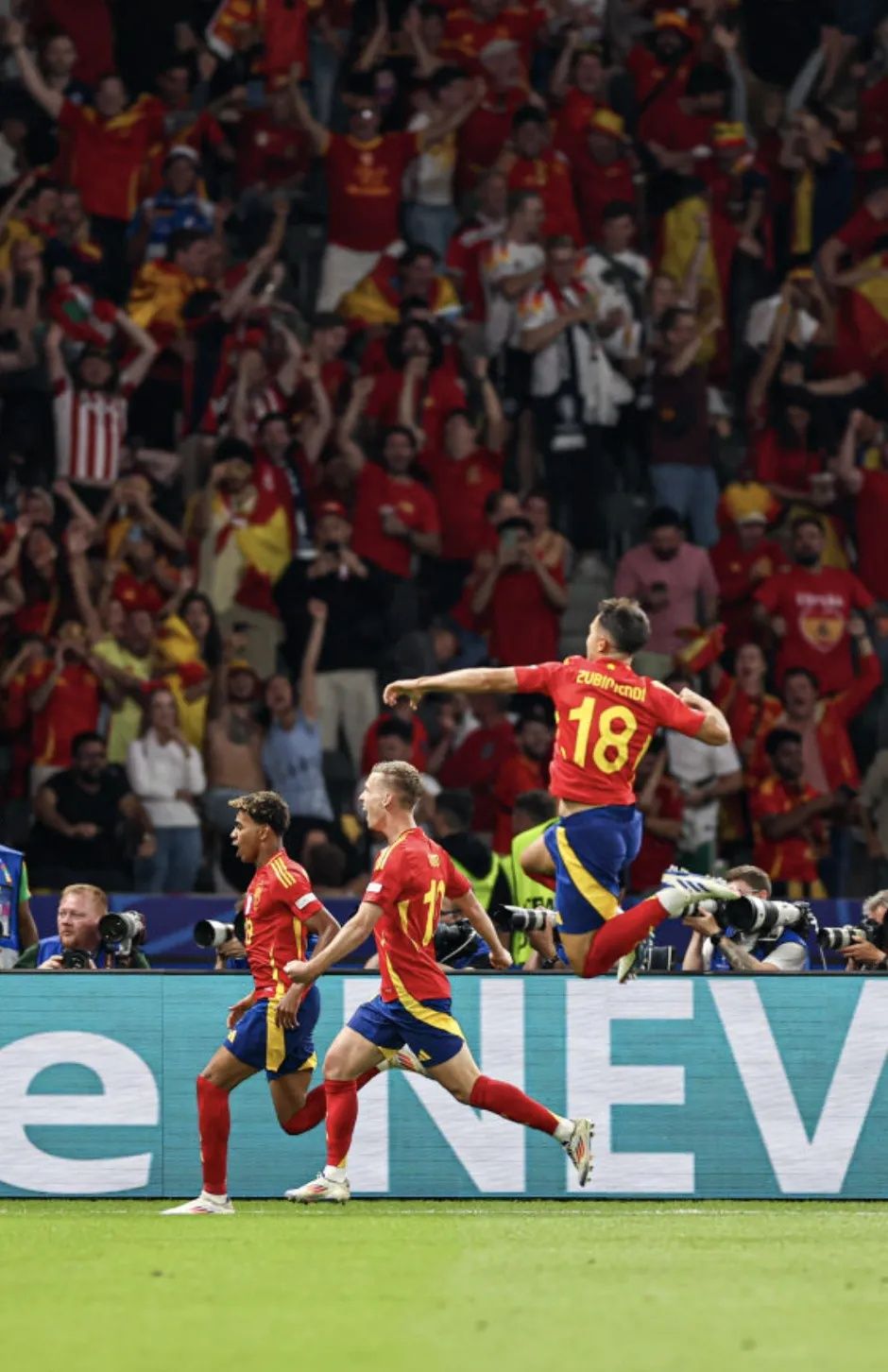 第47分钟,下半场开始不久,西班牙队首先攻入一球。第73分钟,英格兰队进球将比分改写成1:1。第86分钟,西班牙队攻入制胜一球,将比分锁定在2:1。