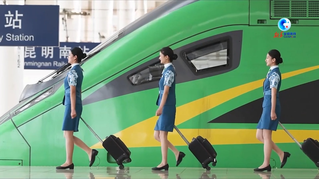 在这条跨国铁路线上,有一群业务强、颜值高的列车员,因其过硬的技术本领,她们被称为“金花”。具有老挝语专业特长的列车员,昆明客运段目前共有18名。