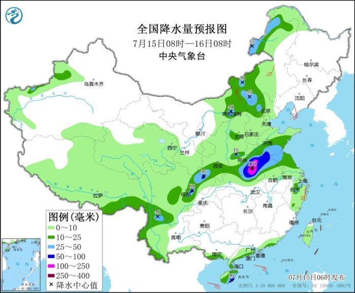 从今天开始,雨带北抬后,河南等地降雨明显增多增强,中央气象台今晨继续发布暴雨黄色预警。预计未来24小时,陕西西南部、四川盆地西部和北部、河南中东部、湖北北部、安徽北部、江苏北部、山东南部及内蒙古中部、河北北部、海南岛东南部等地部分地区有大到暴雨,其中,河南东部等地部分地区有大暴雨,局地特大暴雨(250~270毫米)。上述部分地区伴有短时强降水(最大小时降雨量30~50毫米,局地可超过80毫米),局地有雷暴大风等强对流天气。