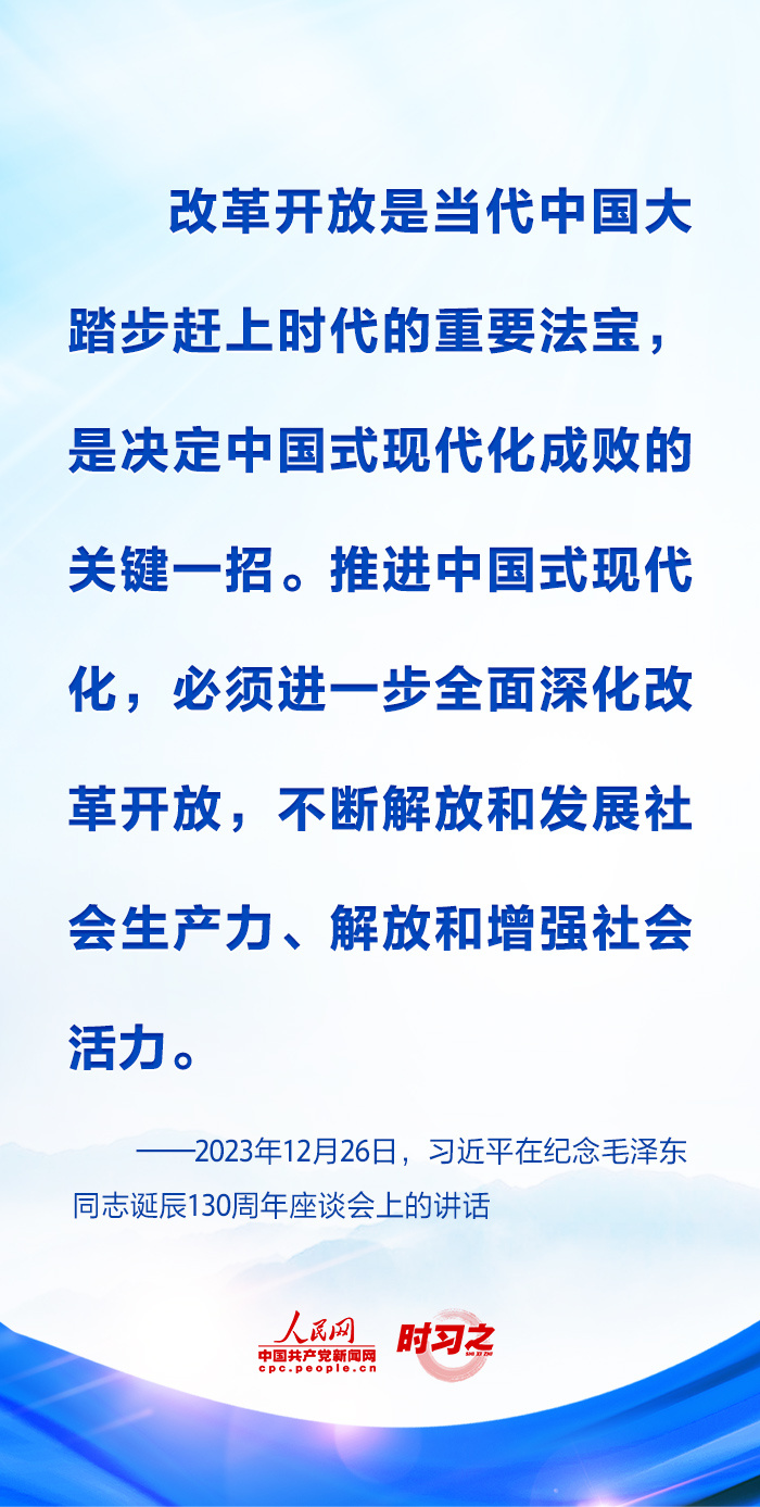 “改革开放是当代中国大踏步赶上时代的重要法宝,是决定中国式现代化成败的关键一招。”党的二十大以来,习近平总书记深刻阐释要把全面深化改革作为推进中国式现代化的根本动力,为在新征程上加快推进中国式现代化指明了方向。