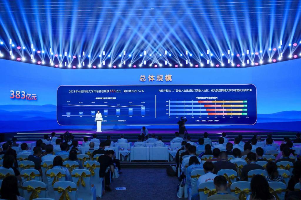7月12日,在第七届中国“网络文学+”大会上发布的《2023年度中国网络文学发展报告》。新华社发
