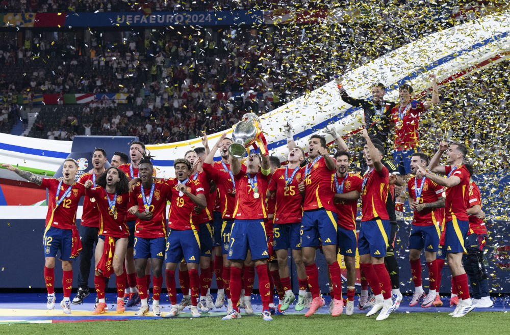 新华社柏林7月14日电 新华社记者刘旸、公兵、肖世尧 14日晚,西班牙队创纪录地第四次夺得欧锦赛冠军,成为欧锦赛历史上夺冠次数最多的球队。回顾本届欧锦赛西班牙队赛程,这个冠军可谓含金量十足,实至名归。