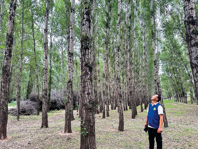 内蒙古兴安盟突泉县学田乡三合村的刘长春在巡护管护区树木(2024年6月10日摄) 宋健摄
