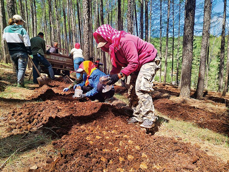 内蒙古赤峰市喀喇沁旗工人在林下种植赤松茸(2024年5月10日摄) 赵建楠摄