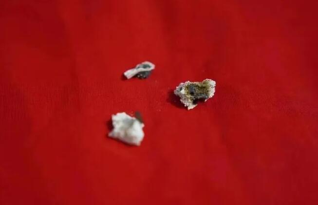高性宽骨灰中的三枚弹片晶体。图片均为受访者供图