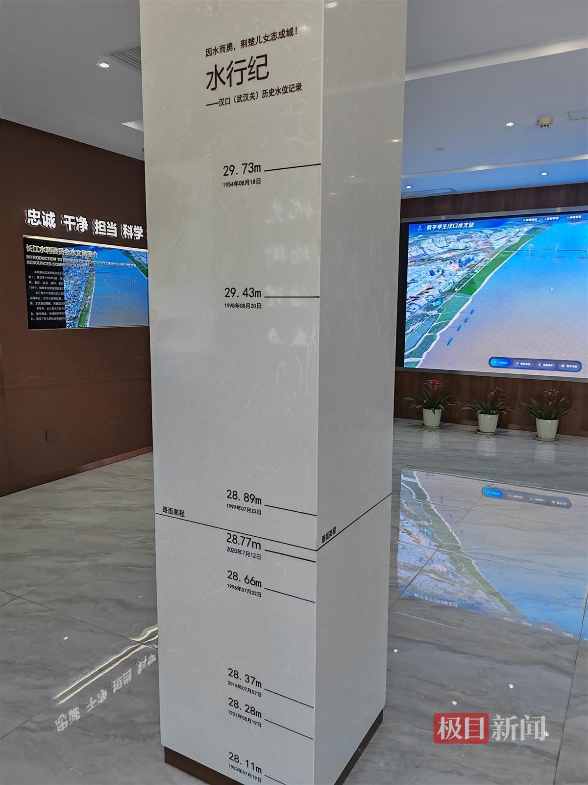 走进汉口水文站,迎面就能看到一个记录汉口历史水位的水行纪,最高水位是1954年8月18日的29.73米,第二位的是1998年8月20日的29.43米。