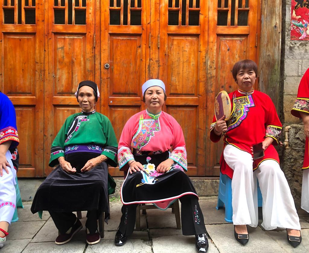 旧州古镇妇女穿着传统服饰凤阳汉装。新华社记者 李凡 摄