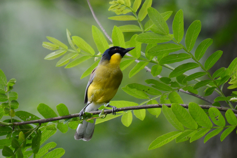 停留在树枝上的蓝冠噪鹛。程新德摄