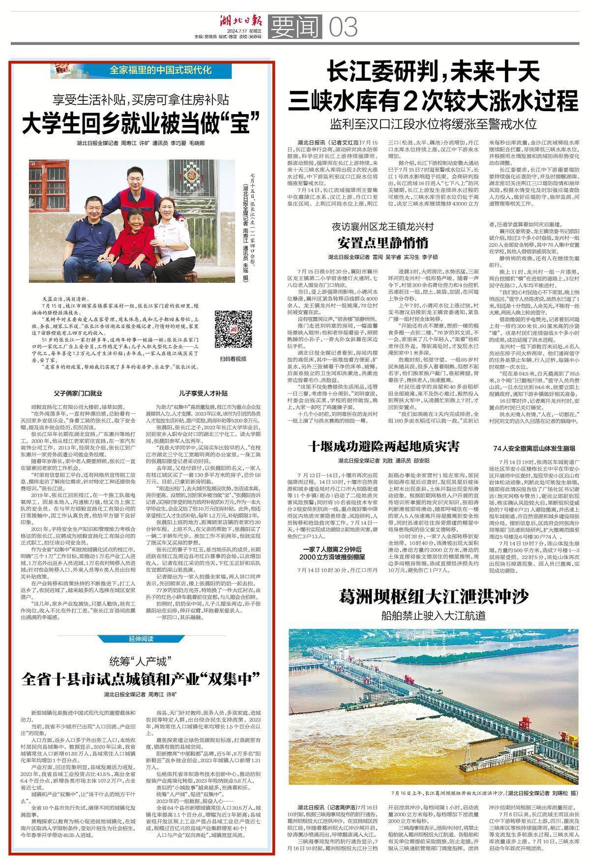 张晨阳,张长江之子,2022年长江大学毕业后,回到家乡入职专业对口的湖北三宁化工。读大学期间,张晨阳参军入伍两年。