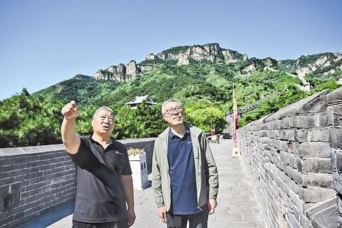 6月24日,董耀会(右)与长城保护员段海滨在黄崖关长城上。记者 史晟全 摄