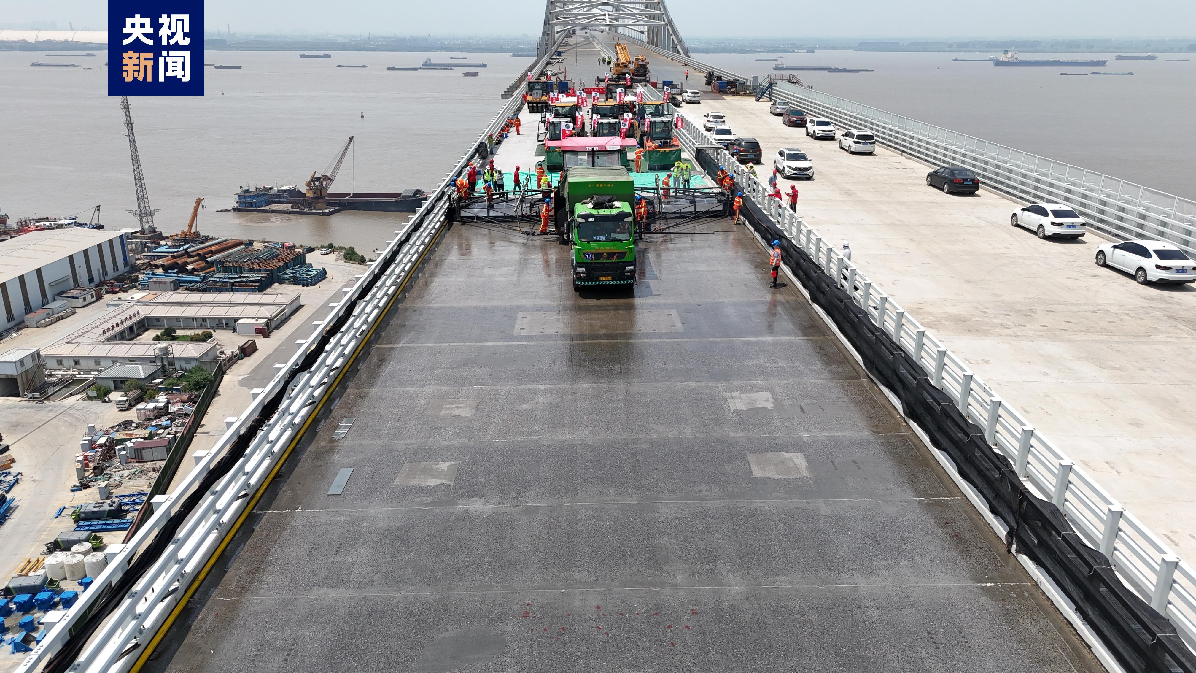 作为长江上首座集高速公路、城际铁路、普通公路三种方式于一体的过江通道,常泰长江大桥跨江段全长10.03公里,其中连续钢桁梁长度达到4.26公里,全桥铺装总面积超25万平方米,平均厚度在6-6.8厘米间。