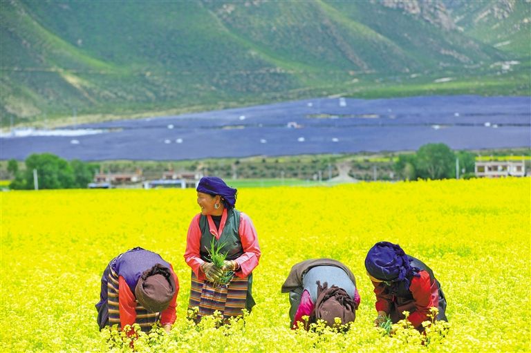 墨竹工卡县扎雪乡龙珠岗村村民在田间劳作。