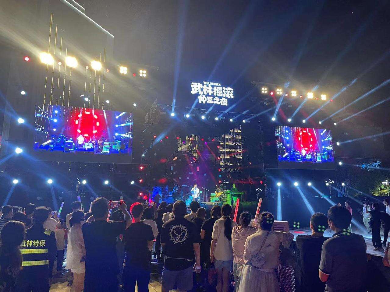 7月19日晚,杭州武林广场空地上,一场摇滚音乐盛宴火爆开唱。19日-21日,杭州市拱墅区主办的“武林摇滚仲夏之夜”在此举行,现场,伴随着激情的摇滚声,观众手持荧光棒,跟着音乐节奏有规律地摇晃着身体,热辣的夏夜愈发“滚烫”。