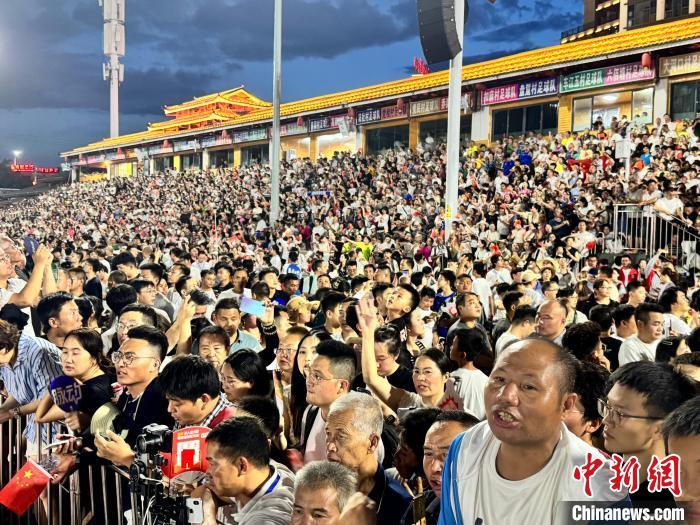 图为7月20日晚,2024年贵州“村超”总决赛现场,观众为球员加油。中新社记者 袁超 摄