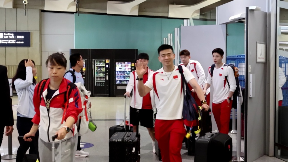 20日,中国羽毛球队抵达巴黎。新华社记者 王安浩维 摄