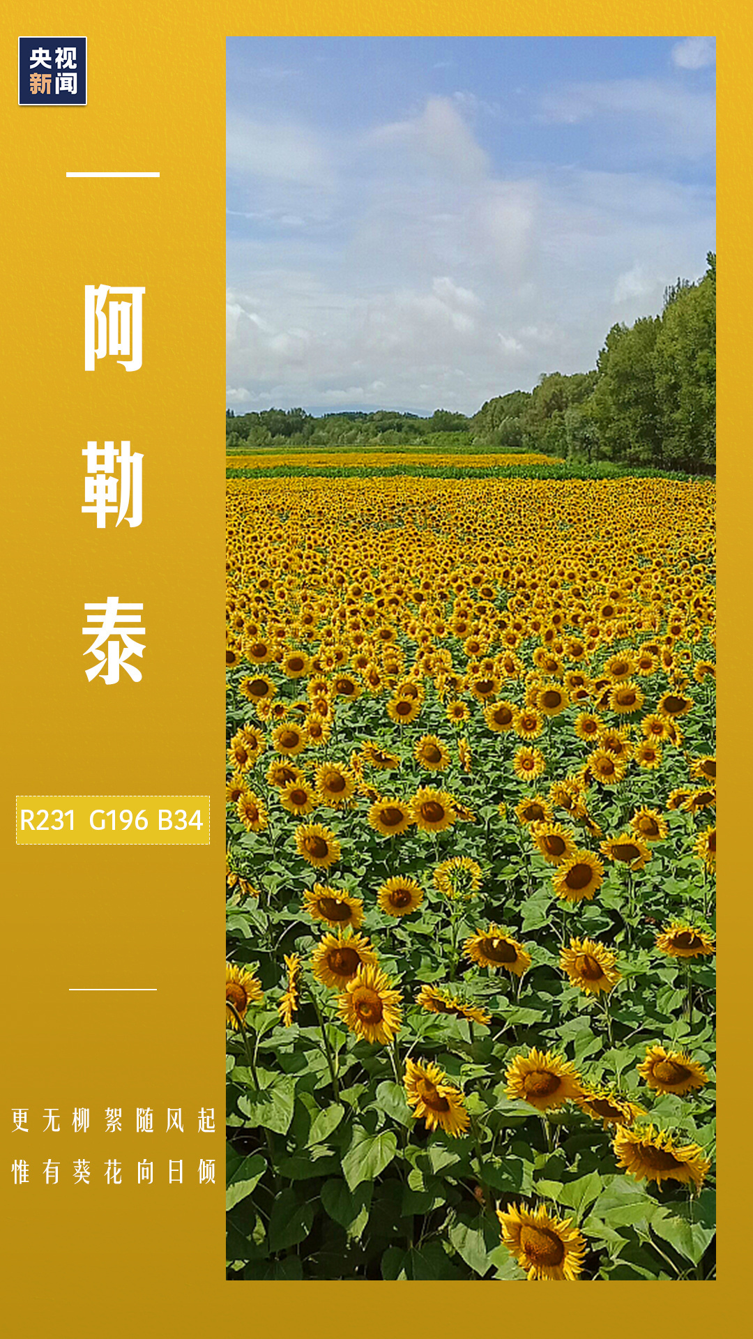 用《我的阿勒泰》开启夏天,那考不考虑用一场阿勒泰的旅行抓住夏天?夏天的阿勒泰,凉爽宜人。在大片的绿色中,这一抹向日葵的黄色格外亮眼!七、八月间,阿勒泰的村庄里到处可见向日葵田。当阳光洒满大地,和向日葵一起拥抱自然吧!