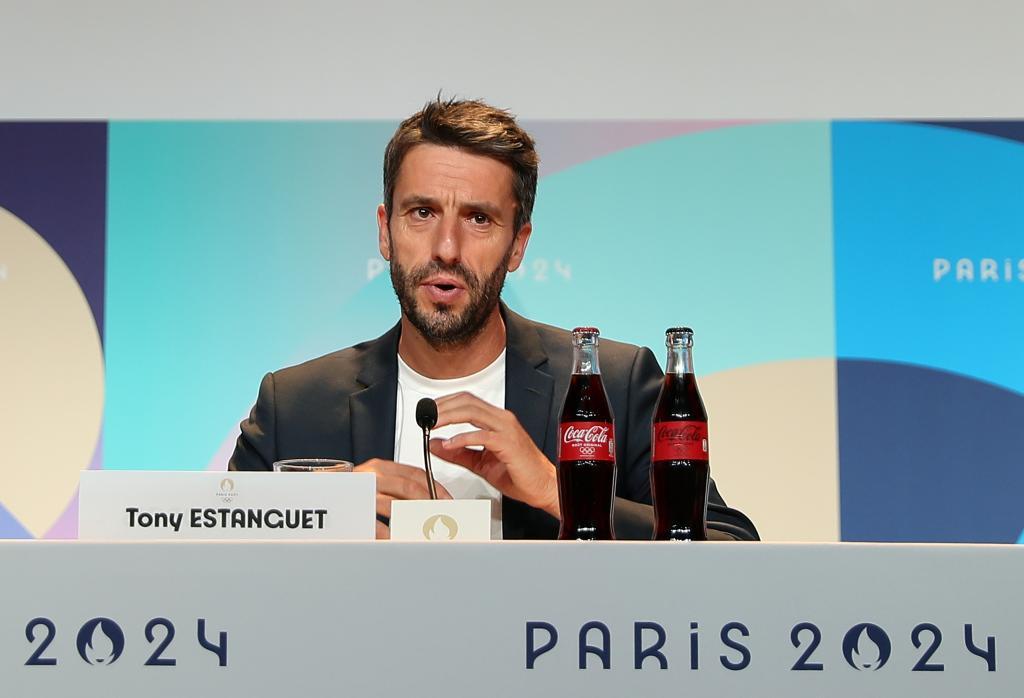 7月21日,巴黎奥组委主席托尼·埃斯坦盖在发布会上发言。新华社记者 王东震 摄