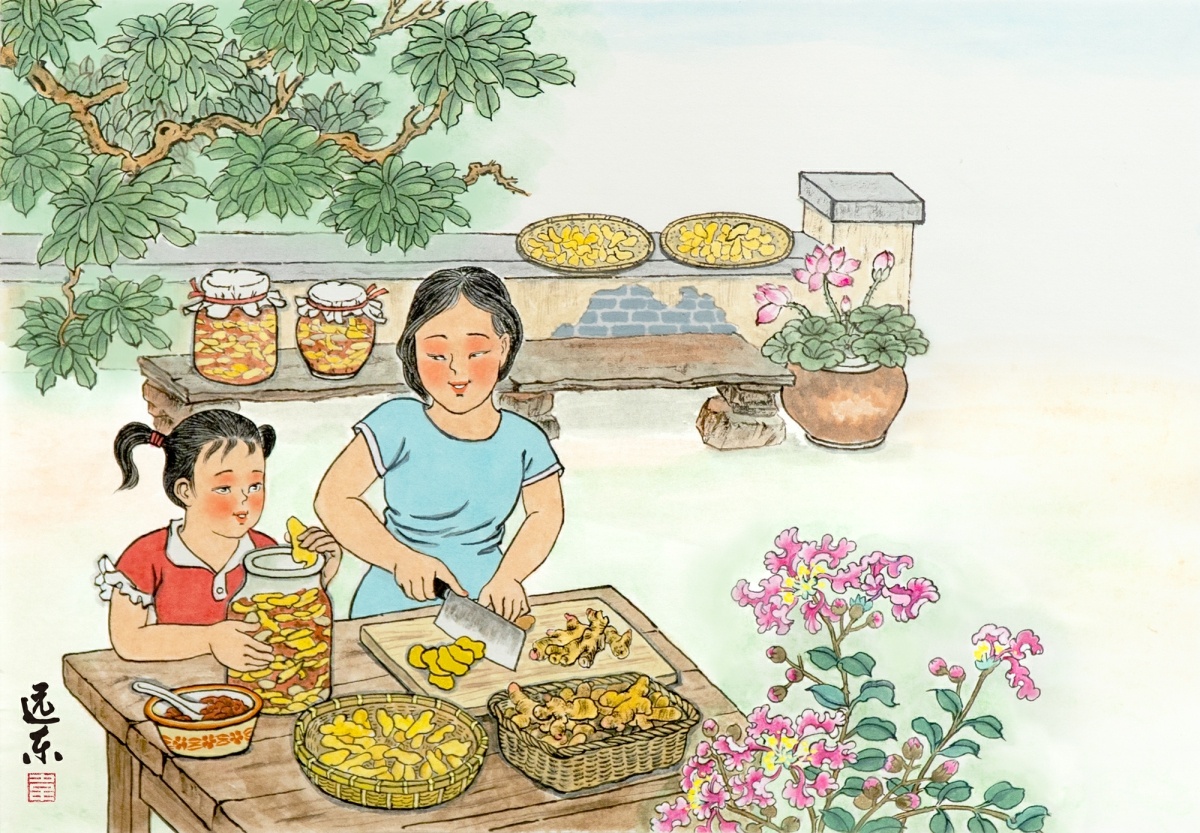 这叫“晒伏姜”