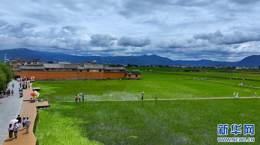 还记得几个月前因为唯美治愈的风吹麦浪而“出圈”的大理喜洲吗?进入夏季,喜洲美景“上新”啦!收割完麦子后,村民们又在田野里栽种了水稻,7月的喜洲,水田水稻与古镇里的白族民居相映成景,田园如画,古镇如诗,吸引了众多游客前来拍照打卡。