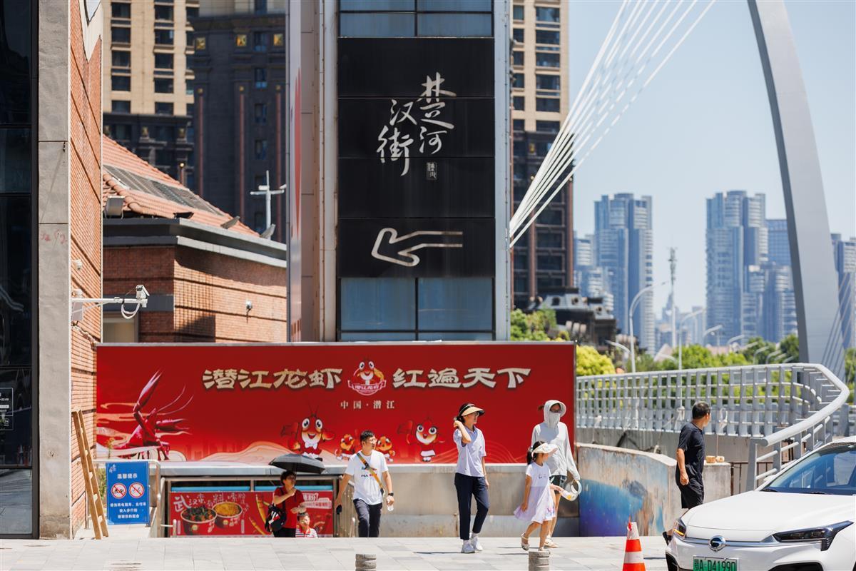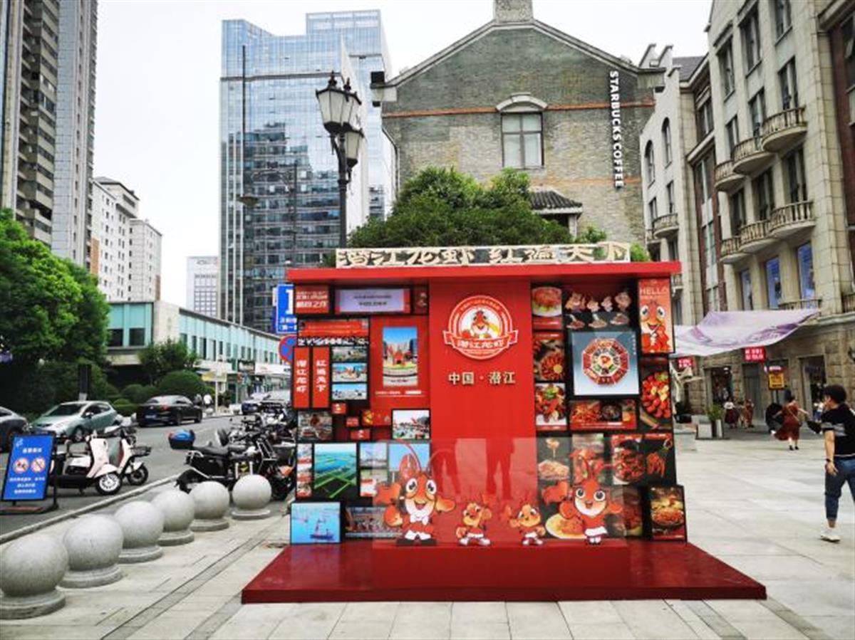 7月20日,“潜江龙虾”IP形象焕新发布,宣传展台、灯箱、小龙虾人偶立牌、滚动屏等潜江元素,走进楚河汉街、水果湖商圈等武汉市的核心商圈,既扮靓了武汉街头,也勾起了不少游客的食欲。