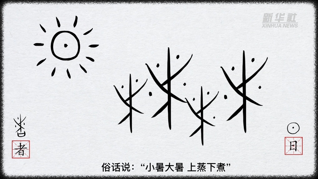 今天,让我们用甲骨文“打开”大暑节气,体会戏水消暑的意趣。