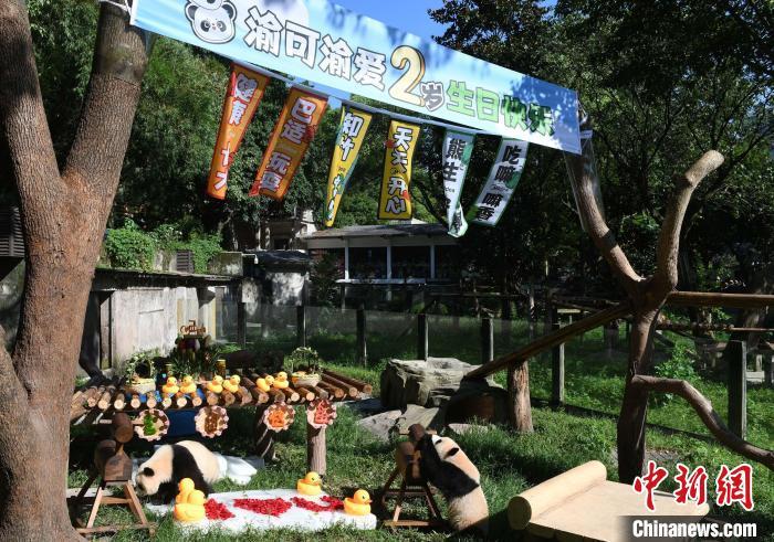 当天,重庆动物园为大熊猫龙凤胎兄妹“渝可”“渝爱”举办2周岁生日会。2022年7月22日,曾旅居加拿大的大熊猫“二顺”在重庆动物园生下“渝可”“渝爱”兄妹,富有重庆特色的名字源于网络征集。