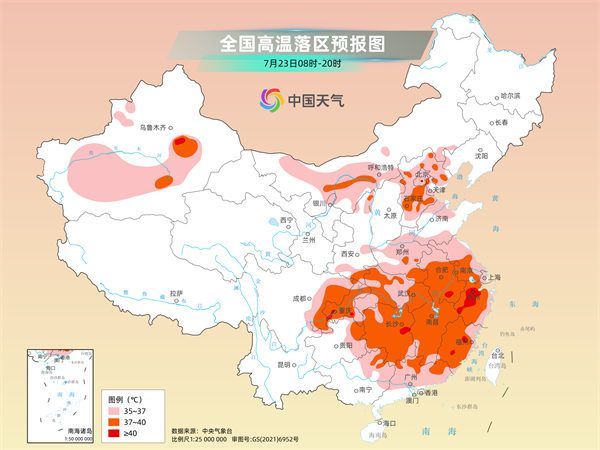 明天重庆南部、浙江西部和北部、安徽南部、湖南东部、吐鲁番盆地等地局地都可达40℃以上。