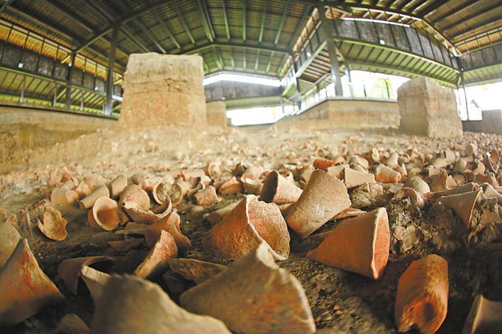 走进三房湾遗址点,数以万计的残次红陶杯堆积在此,密密麻麻,颇为壮观。与之相伴的,还有陶窑、黄土坑、洗泥池、蓄水缸等遗迹。