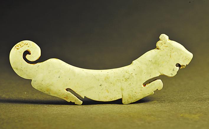 石家河遗址出土的玉虎。(天门市博物馆供图)