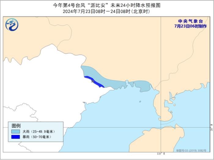 中新网7月23日电 据中央气象台网站消息,中央气象台7月23日06时发布台风蓝色预警: