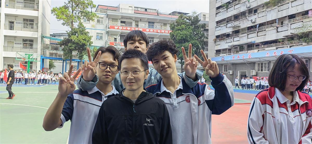 张虎老师与学生合照