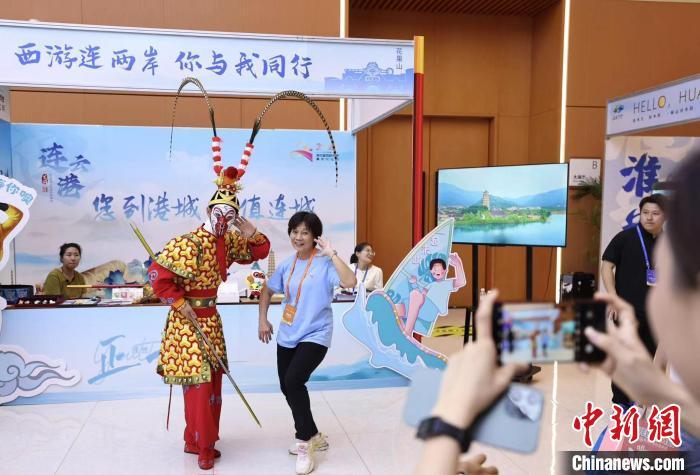 23日,台湾青年在苏州与“美猴王”互动。中新网记者 泱波 摄