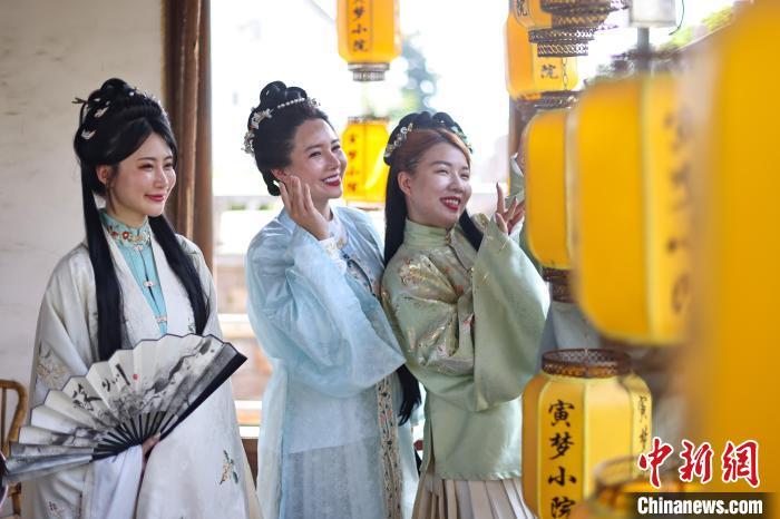 7月22日,江苏苏州,台湾青年在唐寅故居换上古装拍摄照片。 中新网记者 泱波 摄