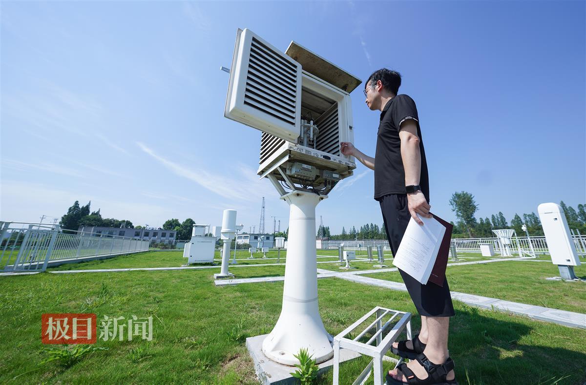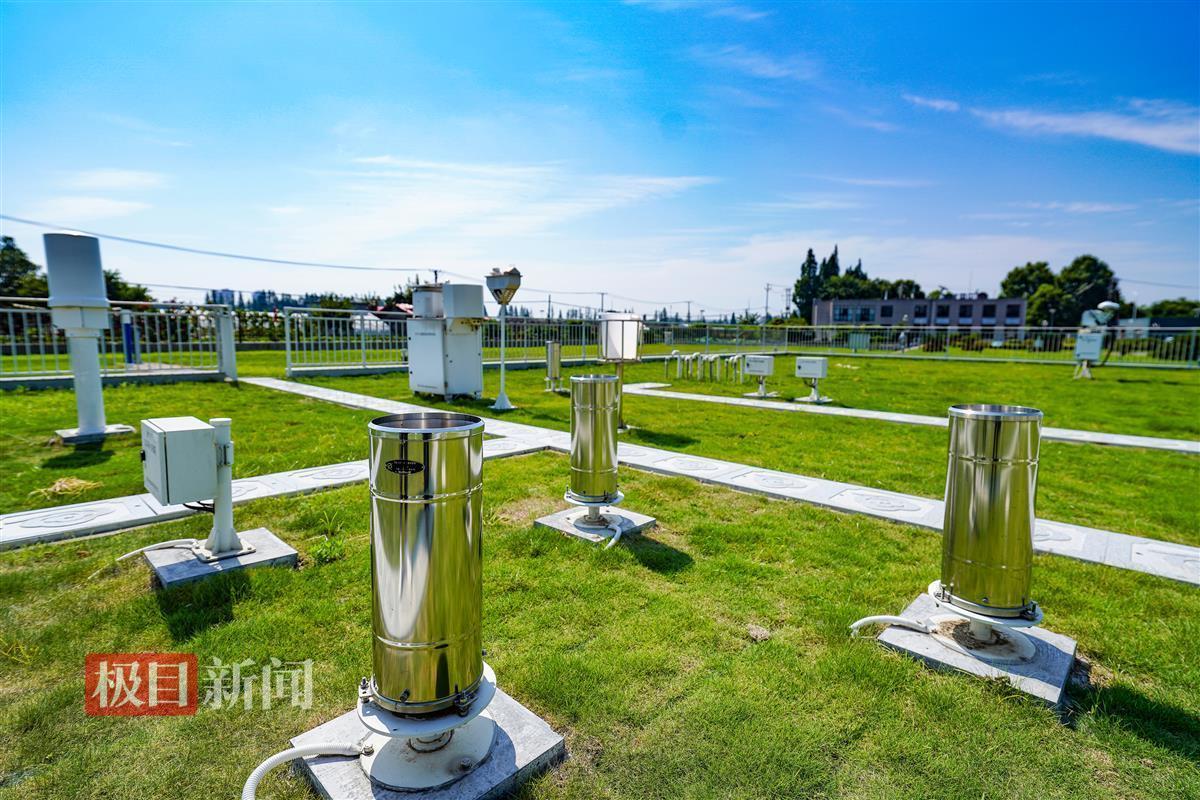 24日上午9时许,记者来到位于东西湖慈惠农场附近的武汉国家基本气象站,四周空旷,没有高楼遮挡,气象站的各种监测设备集结在白色围栏内的一片青草坪上——长35米、宽25米的观测场。
