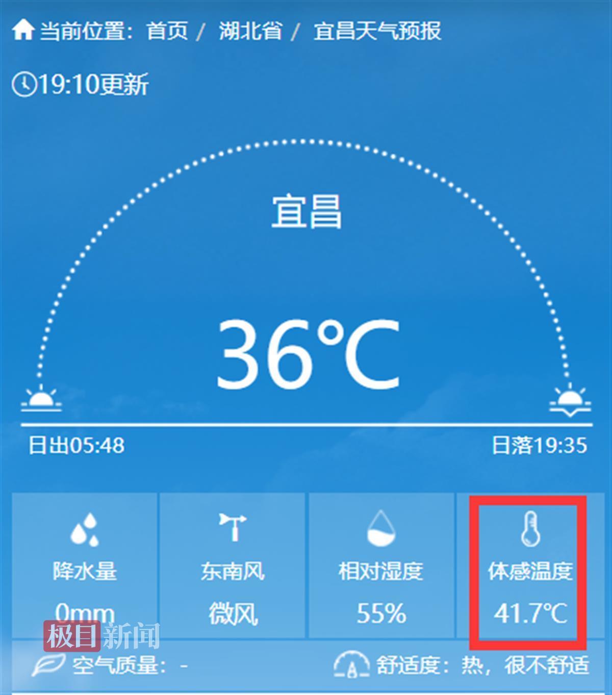 宜昌19时气温36℃,体感温度41.7℃