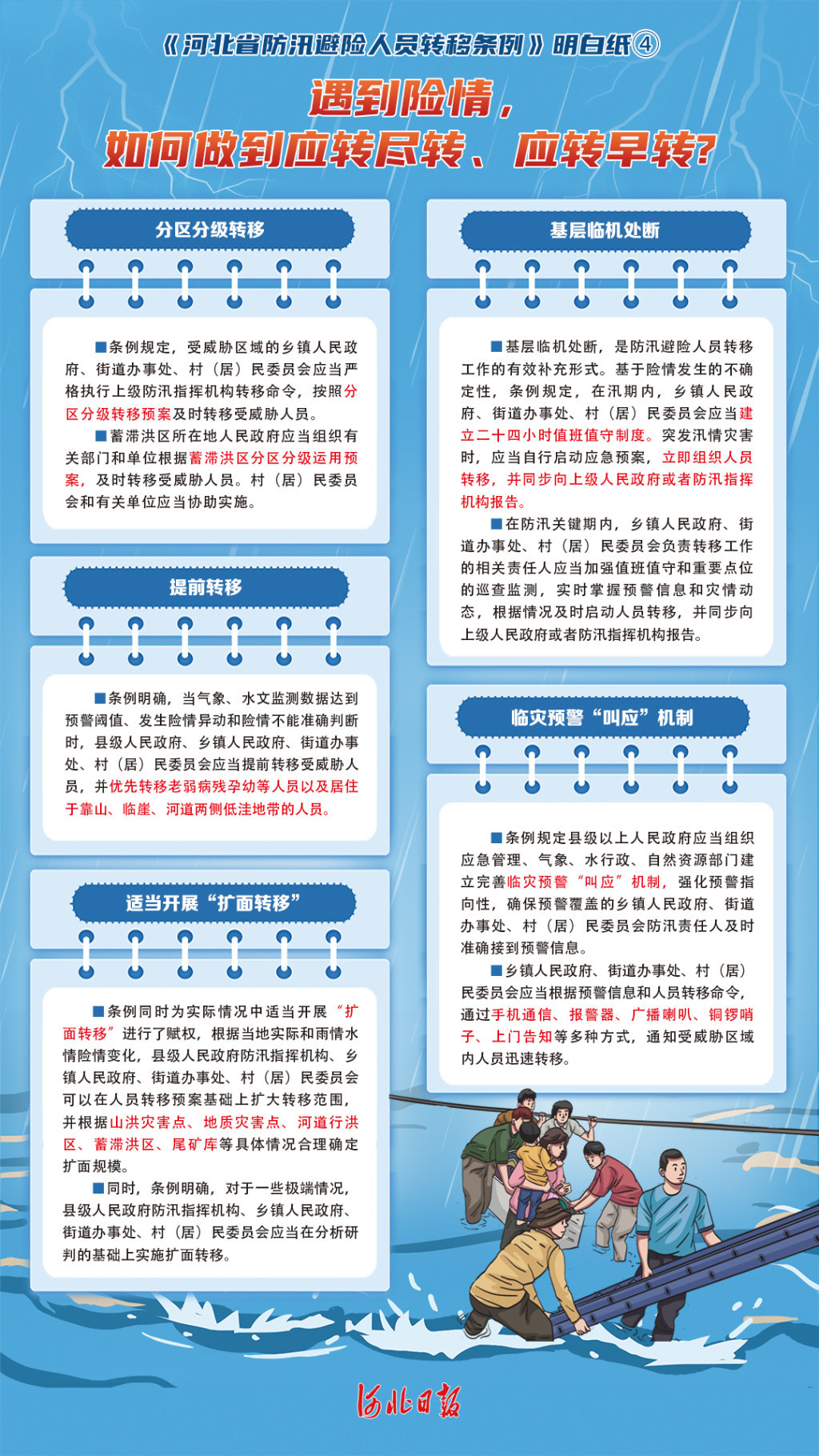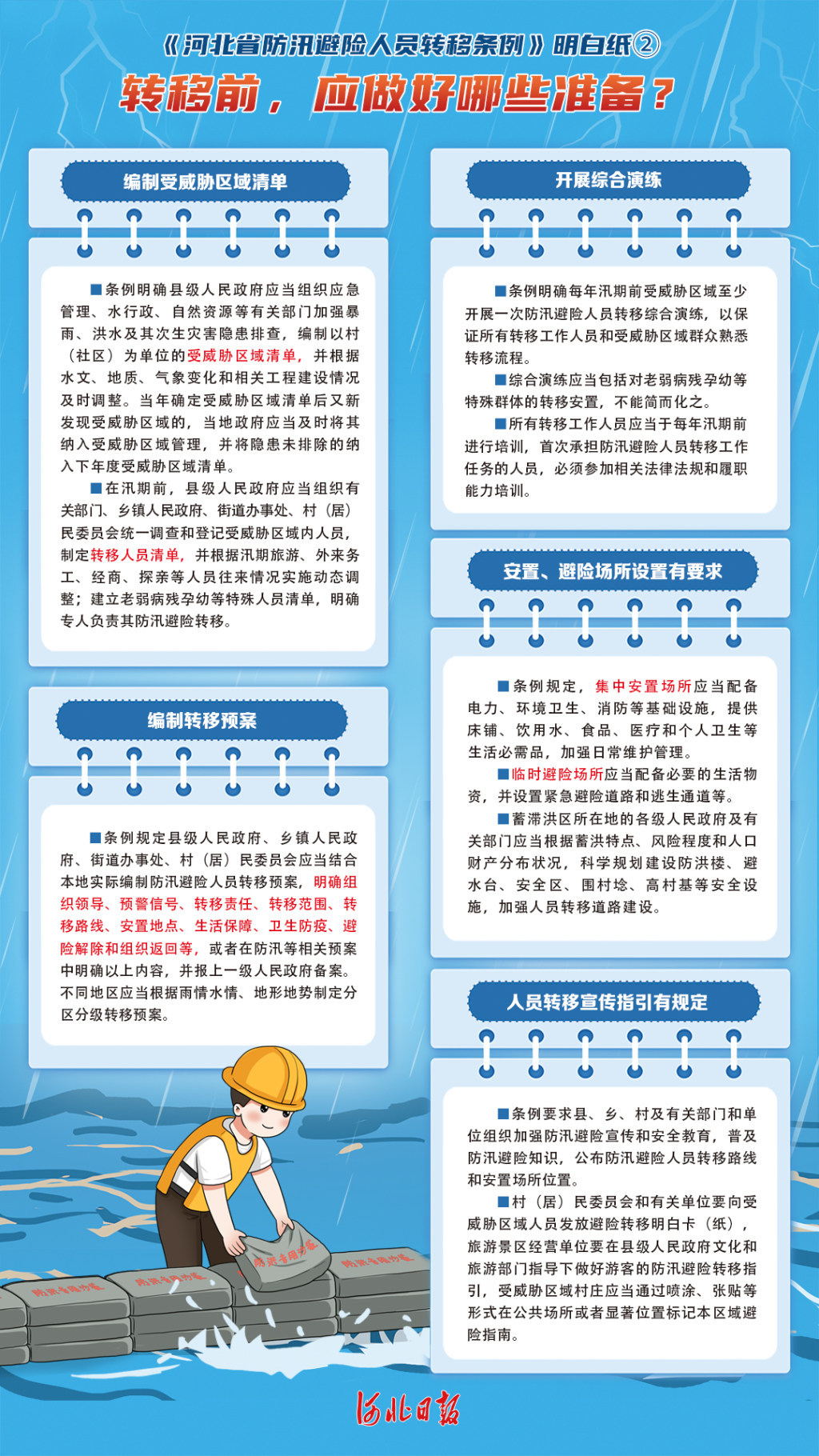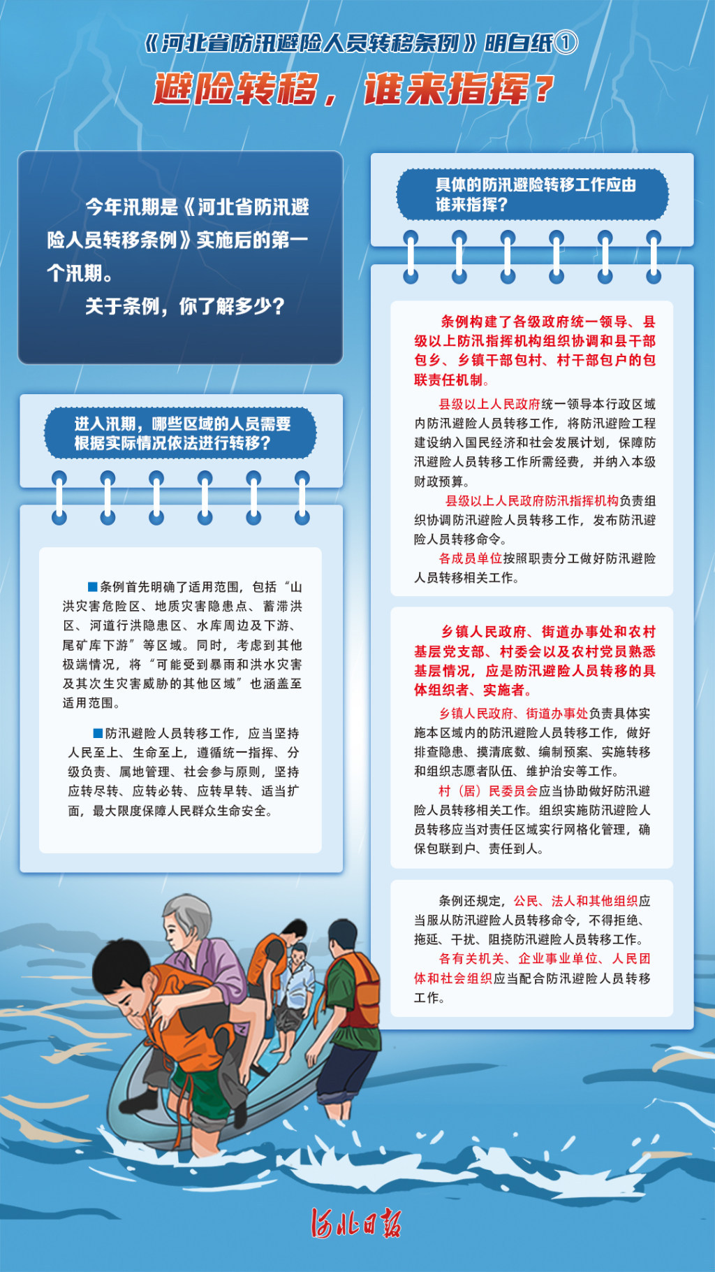 今年汛期是《河北省防汛避险人员转移条例》(以下简称《条例》)实施后的第一个汛期。《条例》的宣传普及和贯彻落实至关重要。河北日报近期推出的系列长图《条例》明白纸,受到广泛好评。应广大网友要求,我们特意制作了《条例》明白纸高清大图版,供全省各地、各单位和有需求的个人下载打印,张贴悬挂。让我们一起行动起来,全力防汛备汛。