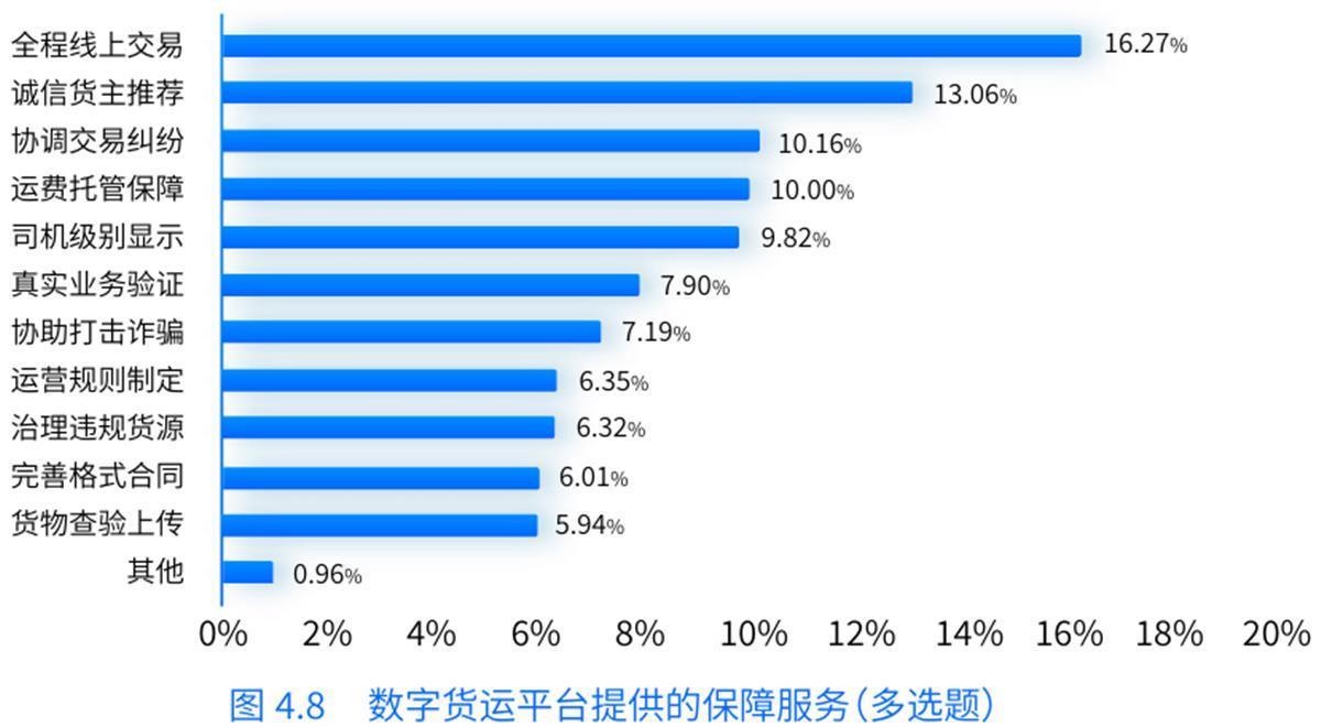 报告指出,通过货车司机在线上获取货源的比例来衡量他们客观上对平台的使用情况,发现货车司机使用数字货运平台的程度较高。
