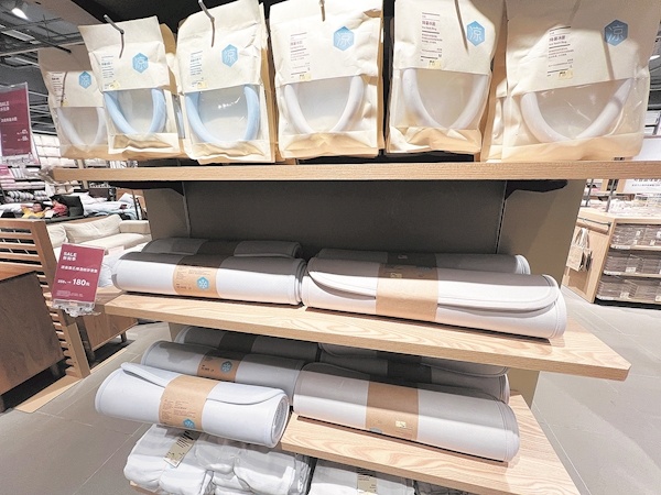 “这些商品均为夏季限定,采用的是科技面料,柔软舒适,与皮肤接触时能明显感受到凉意。”该店店员介绍,由于材质的特殊性,这些床品不能用洗衣机清洗,手洗时也不能用力揉搓,且凉感效果会随着洗涤的次数逐渐减弱。
